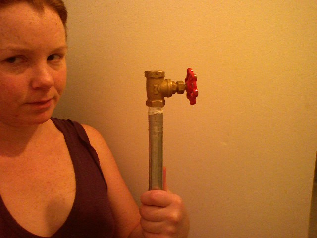 : Faucet broke pipe broke other pipe. Spider in my pants. Install new pipe -- Maybe..? No. What if... No. Or... No. Or... yes! I AM AWESOME! No, I'm not. Damn. Damn damn. Jason? Yay! Ohhhh... Damn. There are metal shards in my foot. Home Depot, you suck.